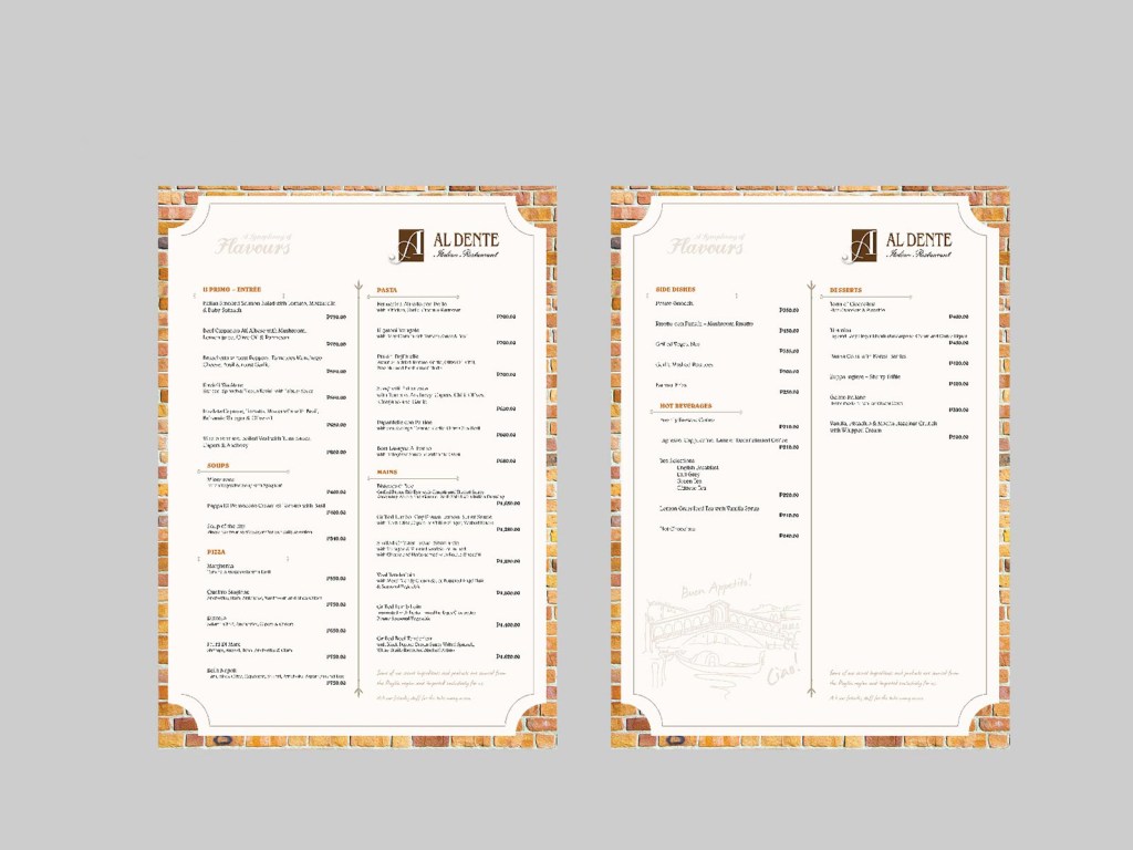 Al Dente, the perfect restaurant for Italian cravings, is renowned for its authentic, non-traditional interpretation of classic Italian cuisine. It is the home of high quality, freshly baked pizzas and scrumptious pasta creations.